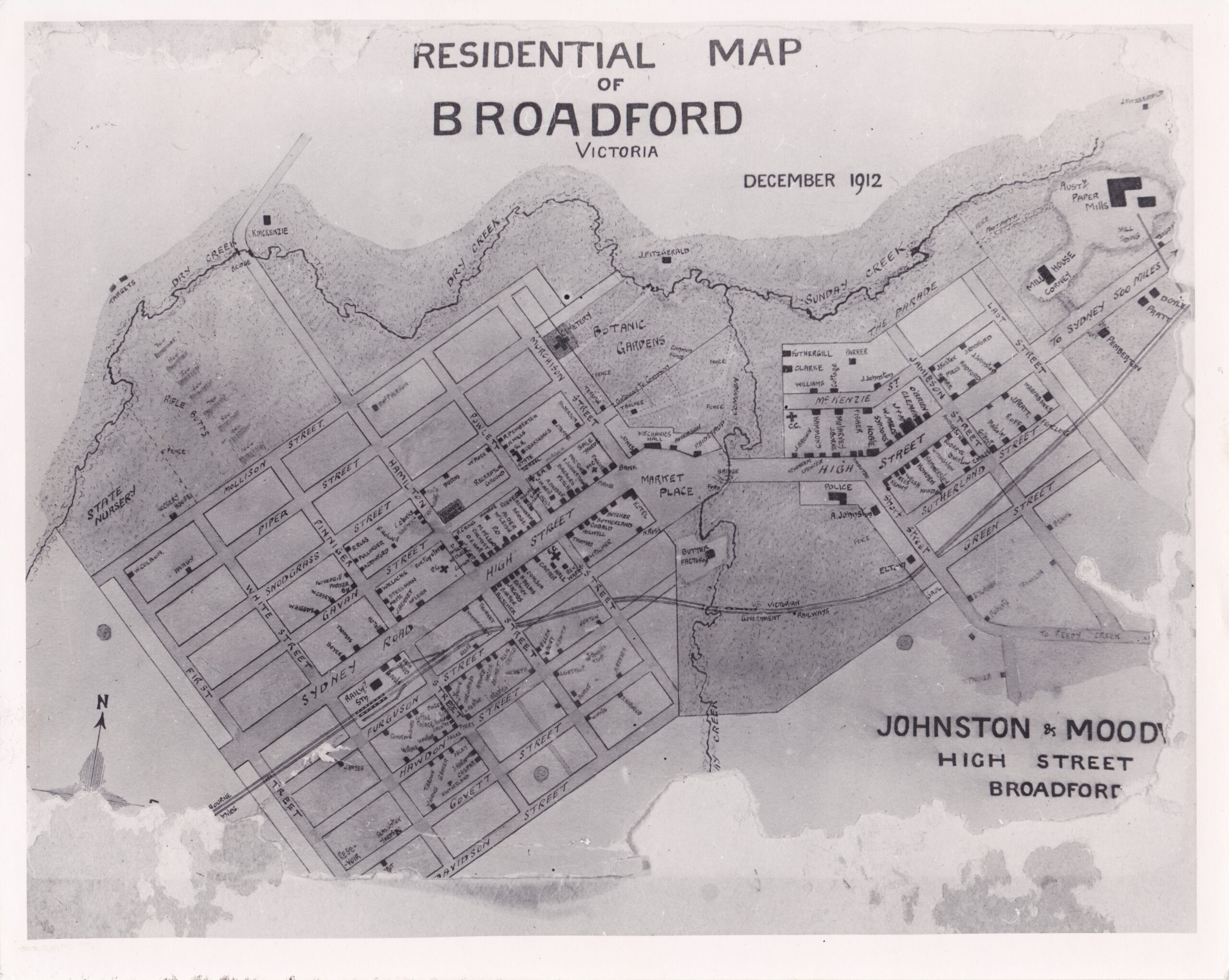The Broadford and District Historical Society covers the districts of Broadford, Strath Creek, Reedy Creek, Tyaak, Sunday Creek, Glenaroua, Flowerdale, Glenburnie, Dry Creek, Sugarloaf Creek, Clonbinane, and Tallarook.